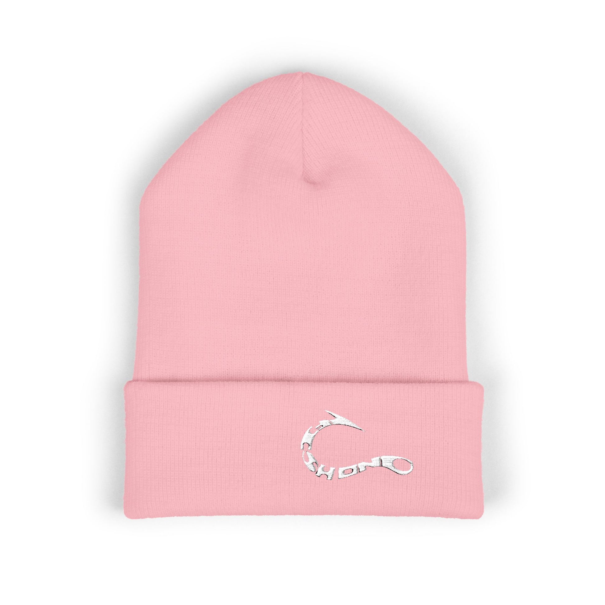 Embroidered Fishing Hook Beanie — Classic Cuffed Knit Hat