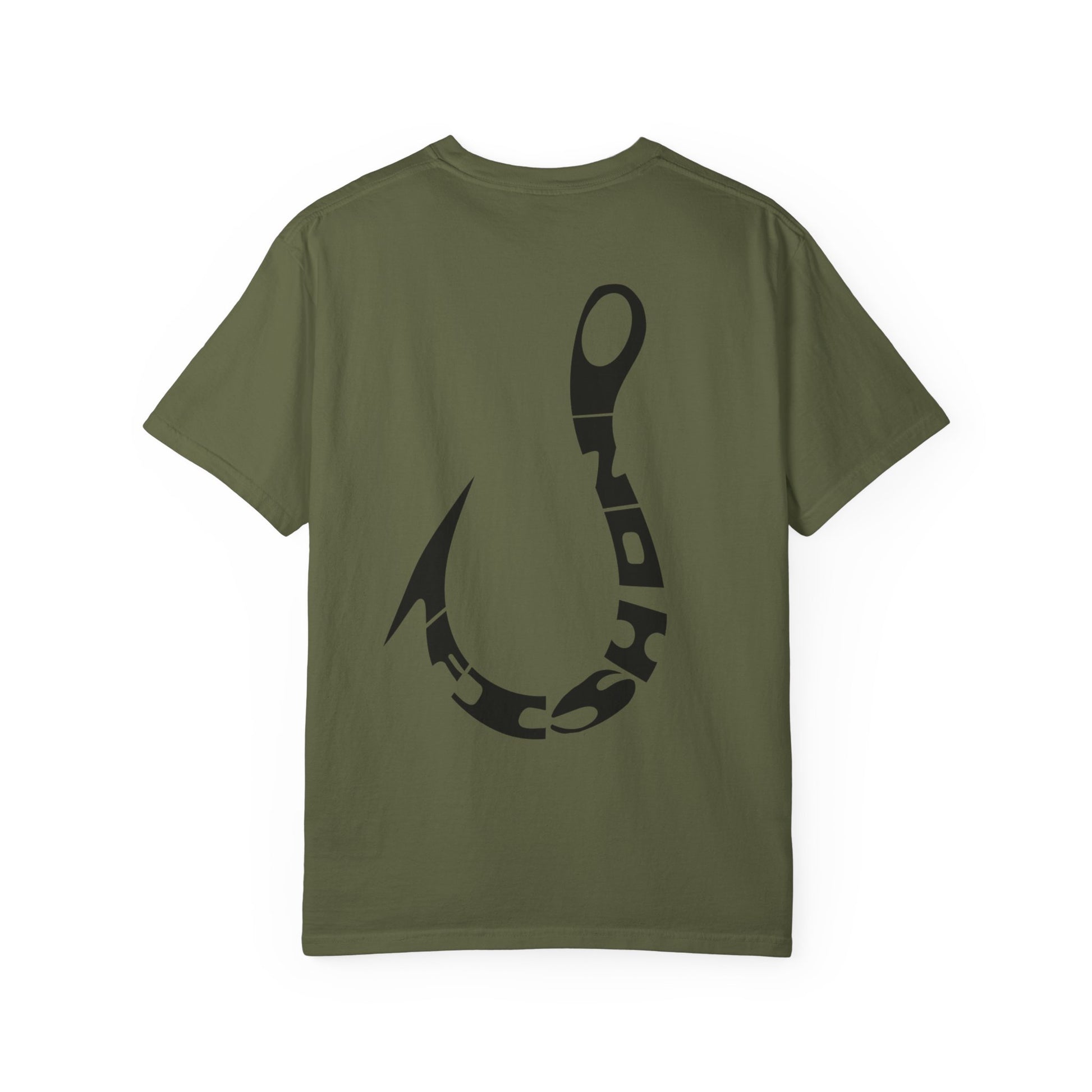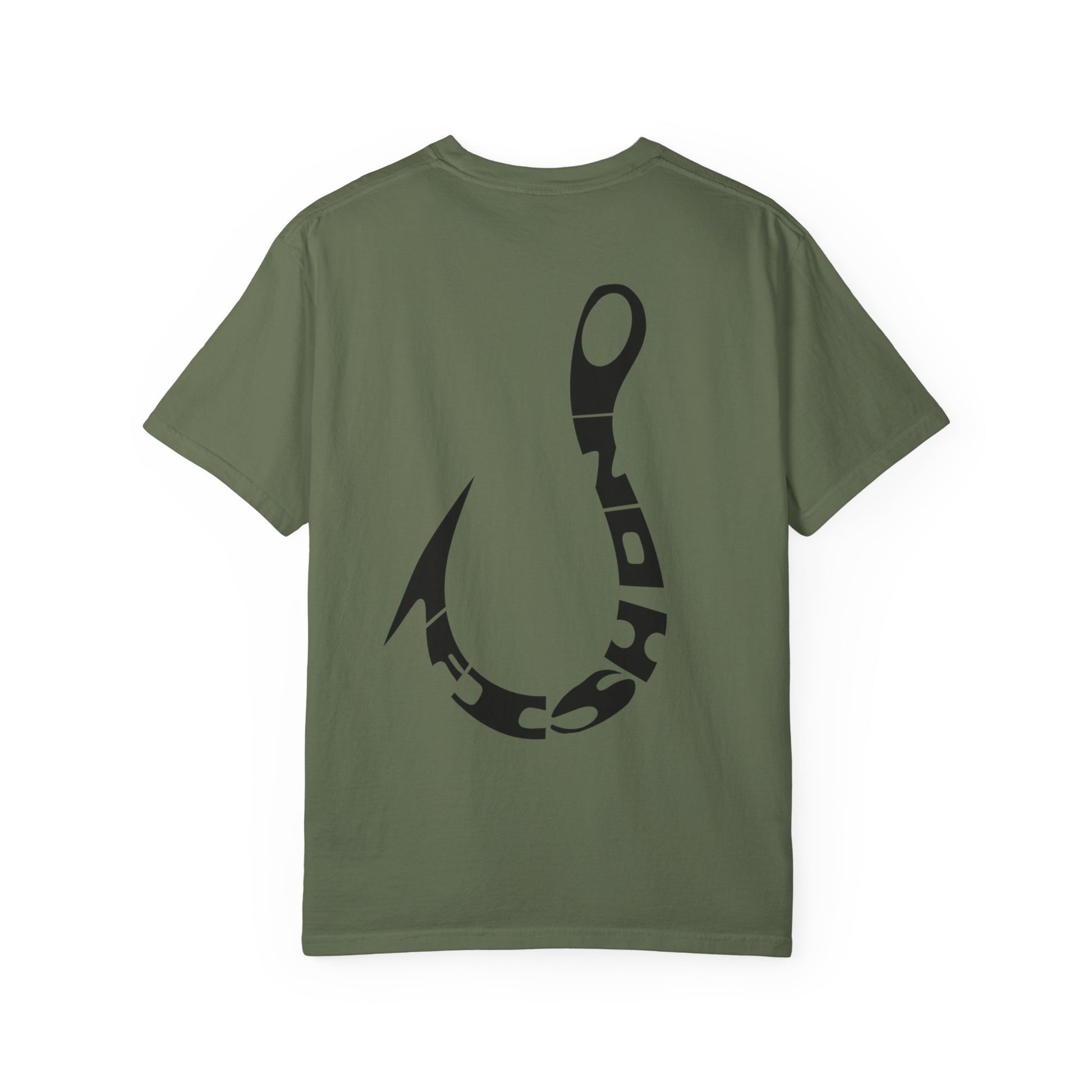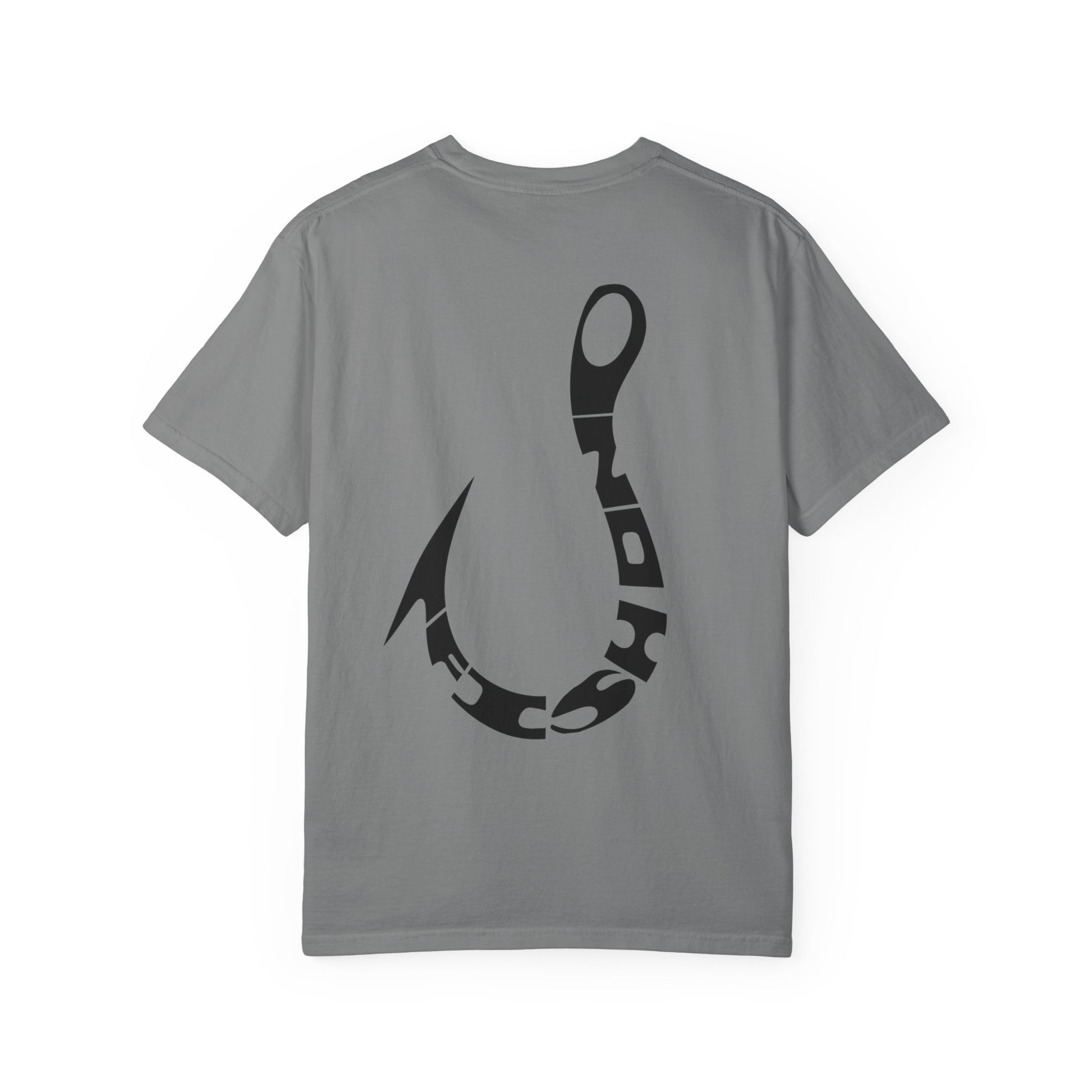 Fishing Hook Graphic T-Shirt — Bold Back Logo & Small Front Pocket Hook