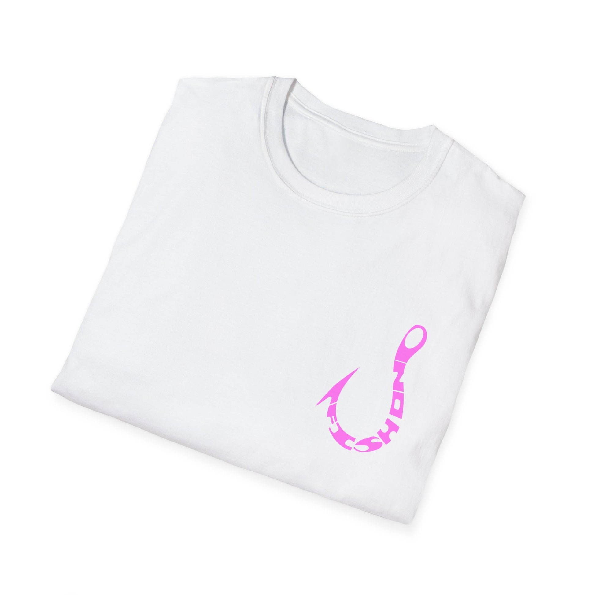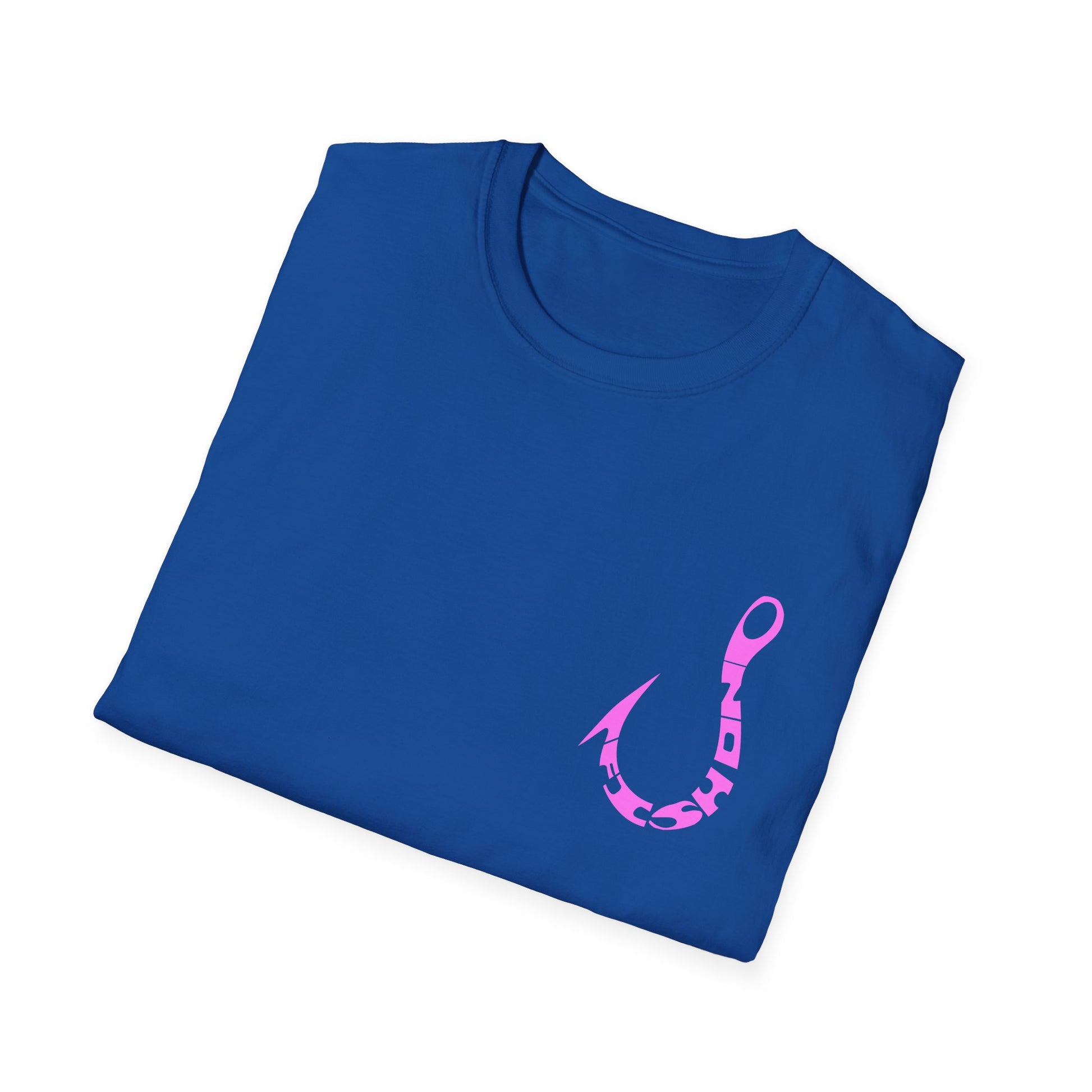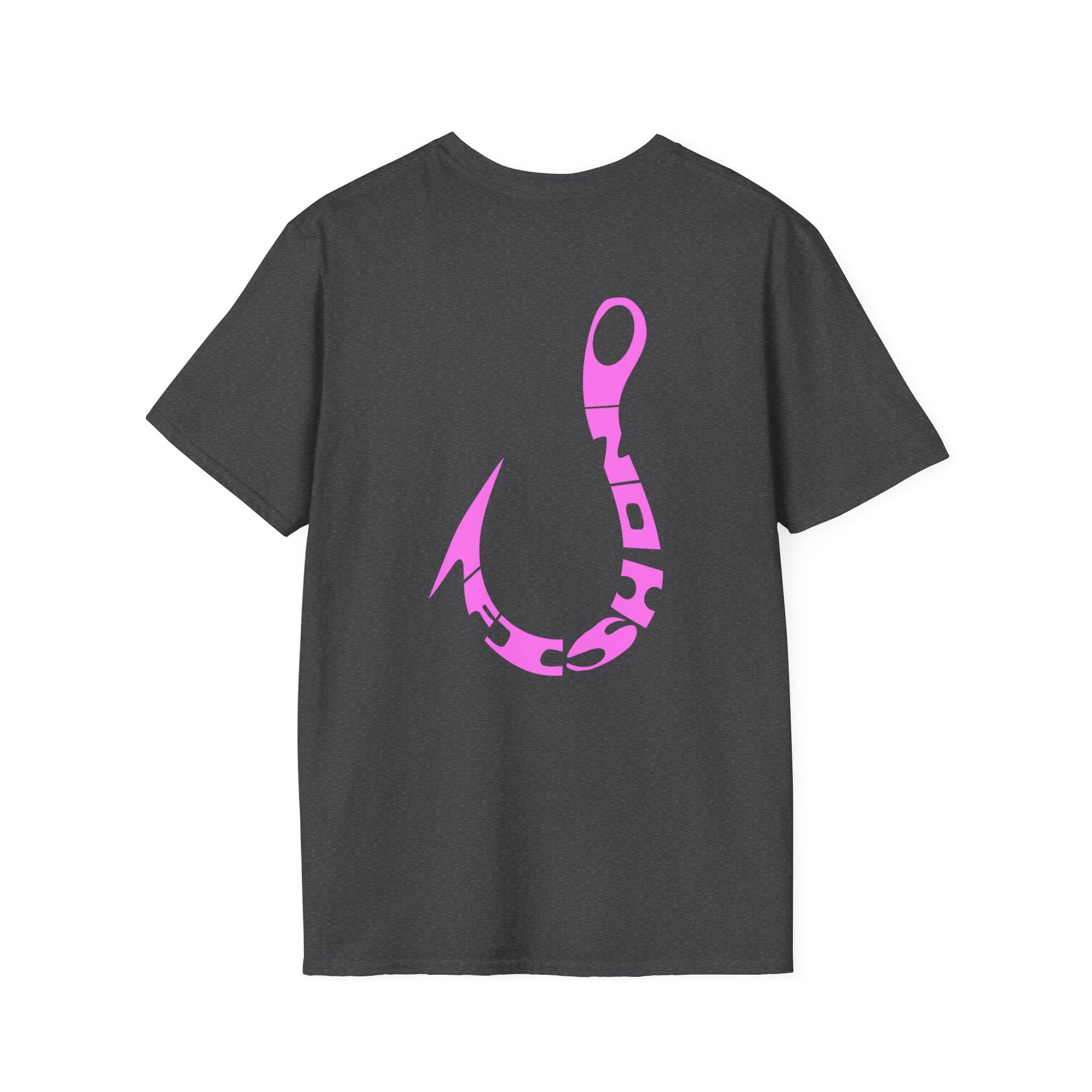 Fishing Hook T‑Shirt — Pink Stylized Hook Graphic Tee