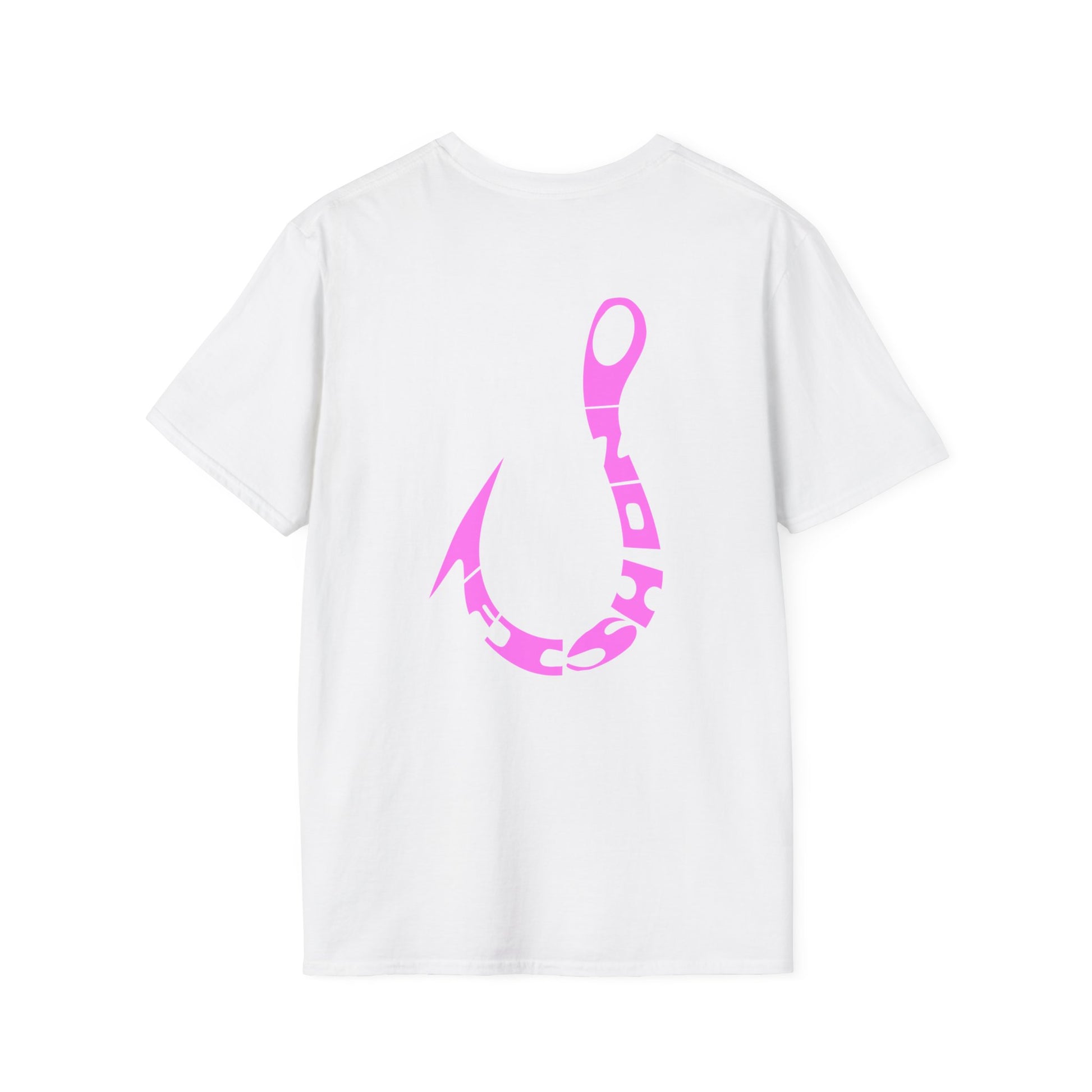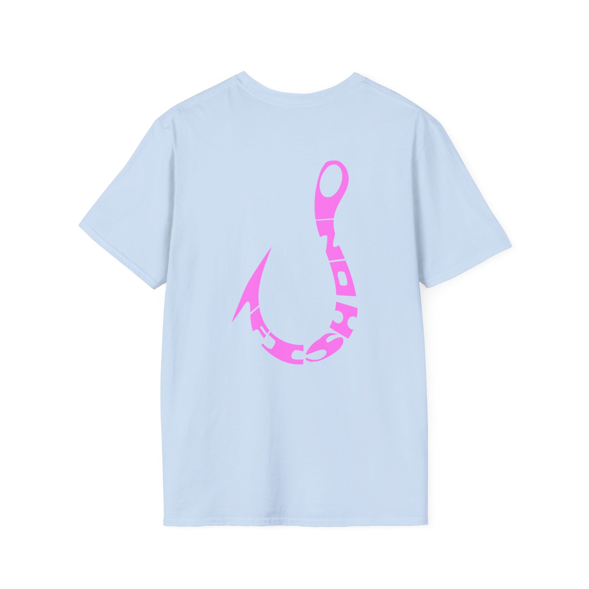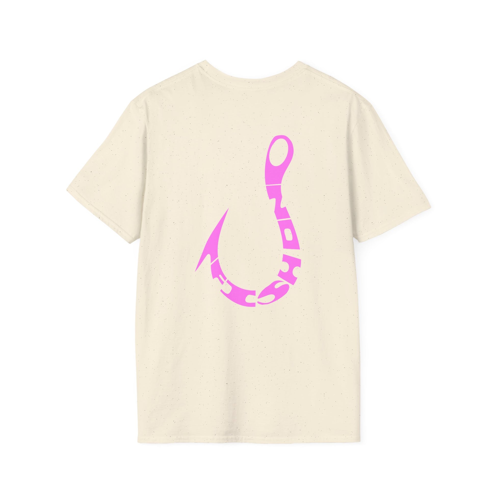 Fishing Hook T‑Shirt — Pink Stylized Hook Graphic Tee
